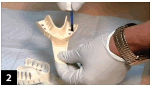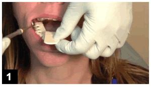 2. When you’re sure you have the right size trays for your patient’s mouth, apply adhesive to the trays. This will help prevent the impression material from becoming unseated from the tray upon removal from the mouth.