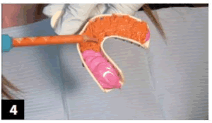 4. Unload the heavy body impression material from the impression gun and load the light body. Be sure you’re using the small tip, because the mixture will flow quickly.