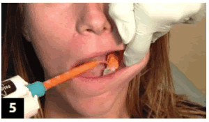 6. Go to the other side of the mouth and, again, starting with the distal side of the last tooth and working mesially, cover the rest of the teeth in the arch.