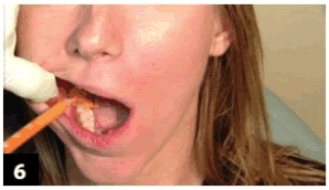 5. Beginning with the distal side of the last tooth in the mouth and working mesially, cover the arch with the light body material. Stop when you reach the central incisors.