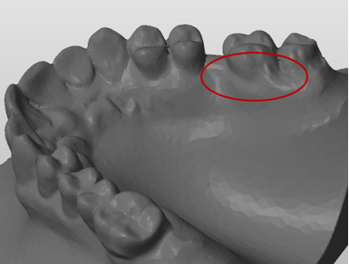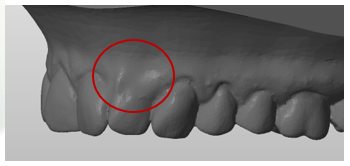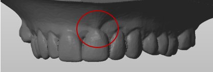 • Description: This is when the material itself captures the majority of the tooth anatomy, however the scanning process does not pick up the tray well, leaving that much of the tooth anatomy incomplete or distorted.