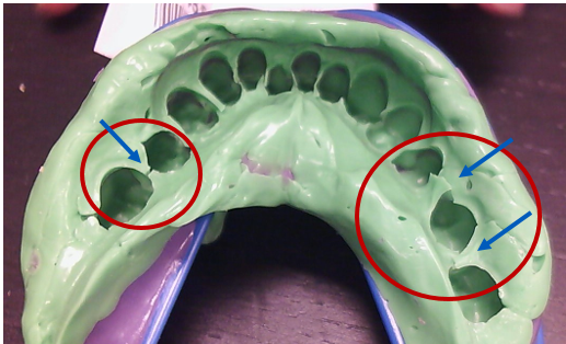 The Following is a comprehensive list of the specific impression problems and procedural errors, their causes and how to avoid them. We will also show you the image of the impression itself compared to its digital model, for increased clarity of each issue.